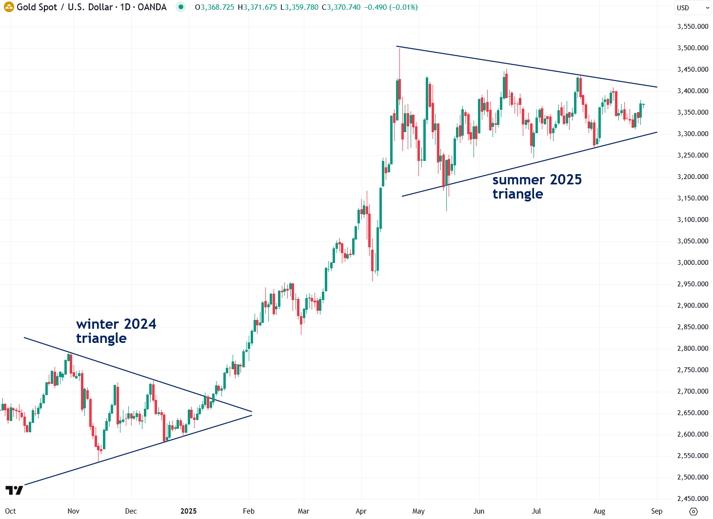 If interest rates were to fall significantly from here, that would likely trigger a breakout in gold from its triangle pattern, with the potential to run to at least $4,000, as I recently explained. You can also read my other report on why JPMorgan and Goldman Sachs expect gold to reach $4,000 by 2026.